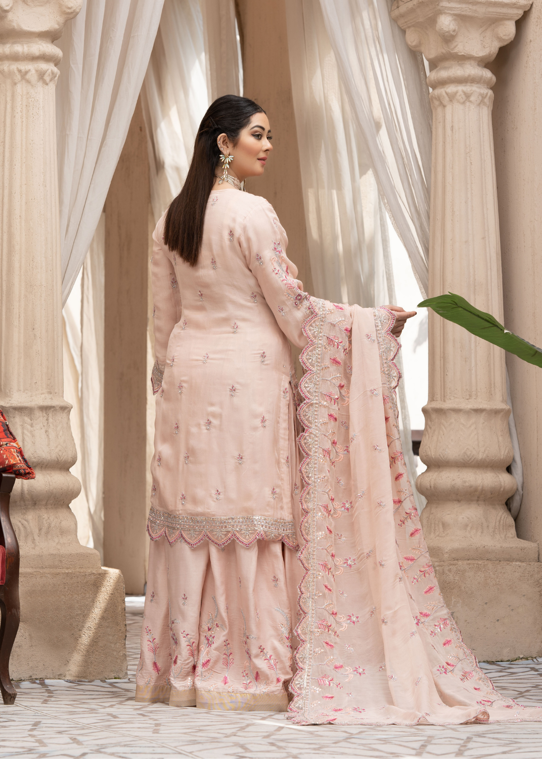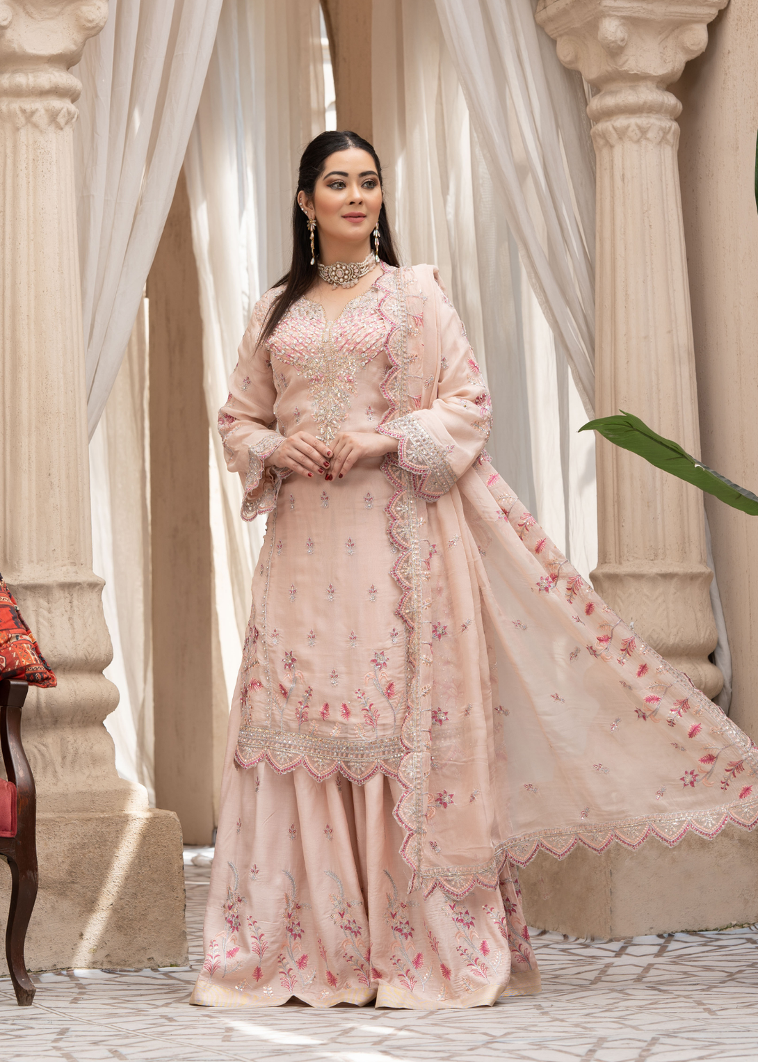 Dupatta Style: Embroidery with organza cut on all sides of borders