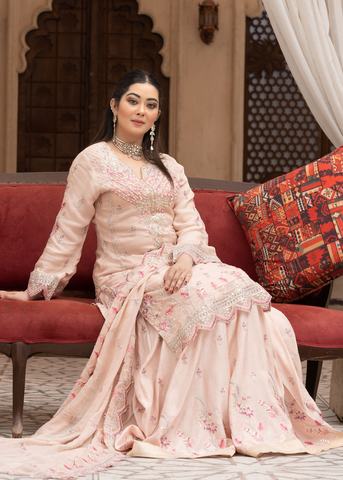 Work Technique: Handamade Adda Work, heavy Embroidery ,heavy bordered organza embroidery